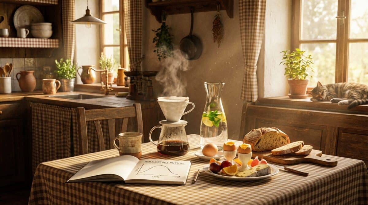 Les repas jouent aussi un rôle. Un déjeuner très lourd peut provoquer un coup de barre, puis un cercle : sieste longue, coucher plus tard, sommeil fragmenté. À l’inverse, une assiette pensée comme une cuisine de trattoria légère (légumes, protéines, féculent modéré, huile d’olive) soutient la stabilité glycémique et réduit les montagnes russes de vigilance.